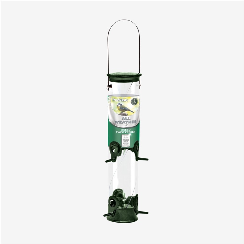 This feeder includes 3 seed chambers to fill with a variety of seed mixes and single seeds. Its multiple feeding ports will encourage more birds to your garden.
