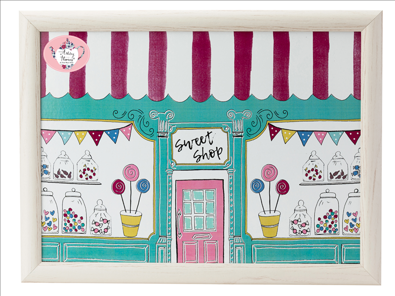 It has an easy wipe clean surface and a cushioned bottom to allow for maximum comfort. The design features a delightful Sweet Shop illustration, which is part of a collection by Ashley Thomas which is inspired by Great British villages.