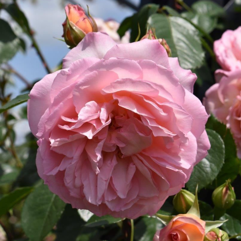 Very fragrant climber with apricot pink blooms. Will tolerate some shade.