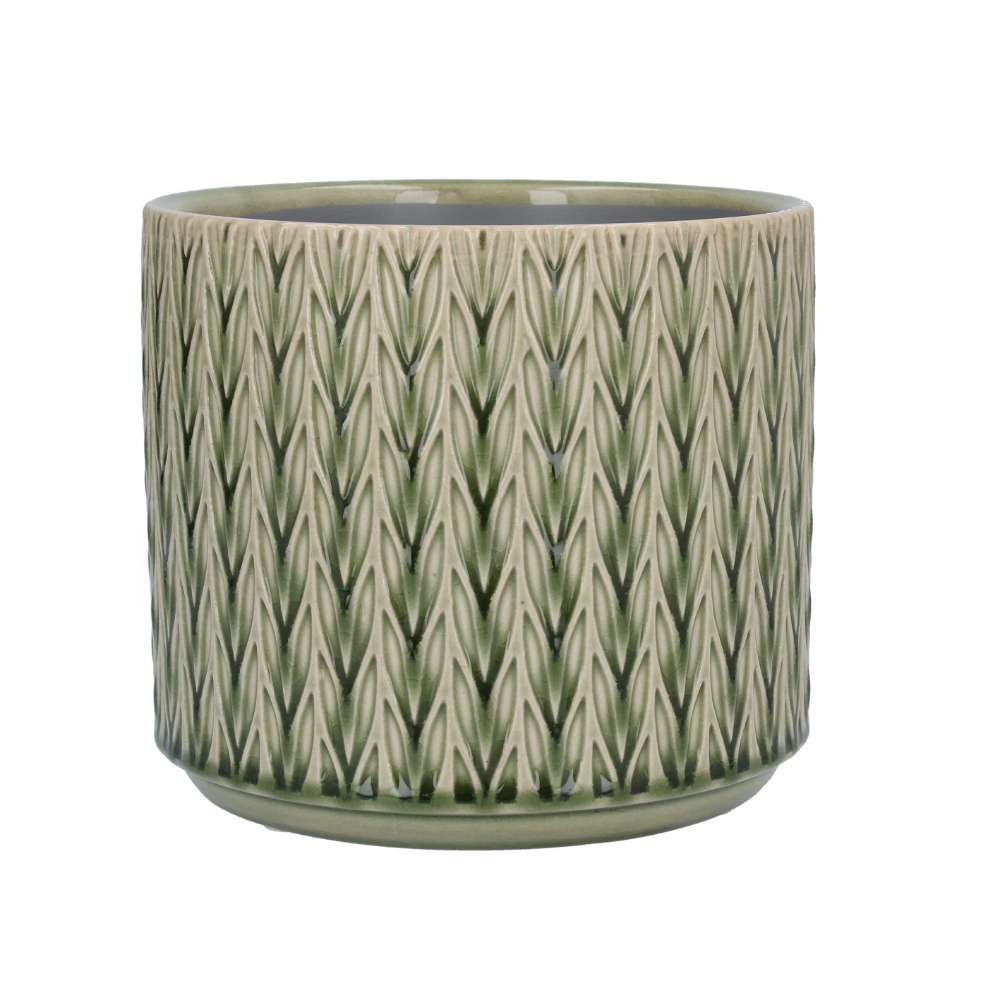 Green staghorn patterned ceramic pot.