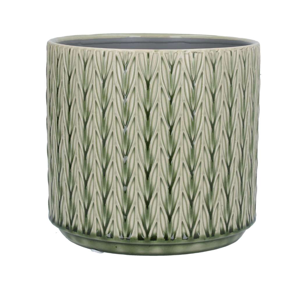 Green staghorn patterned ceramic pot.