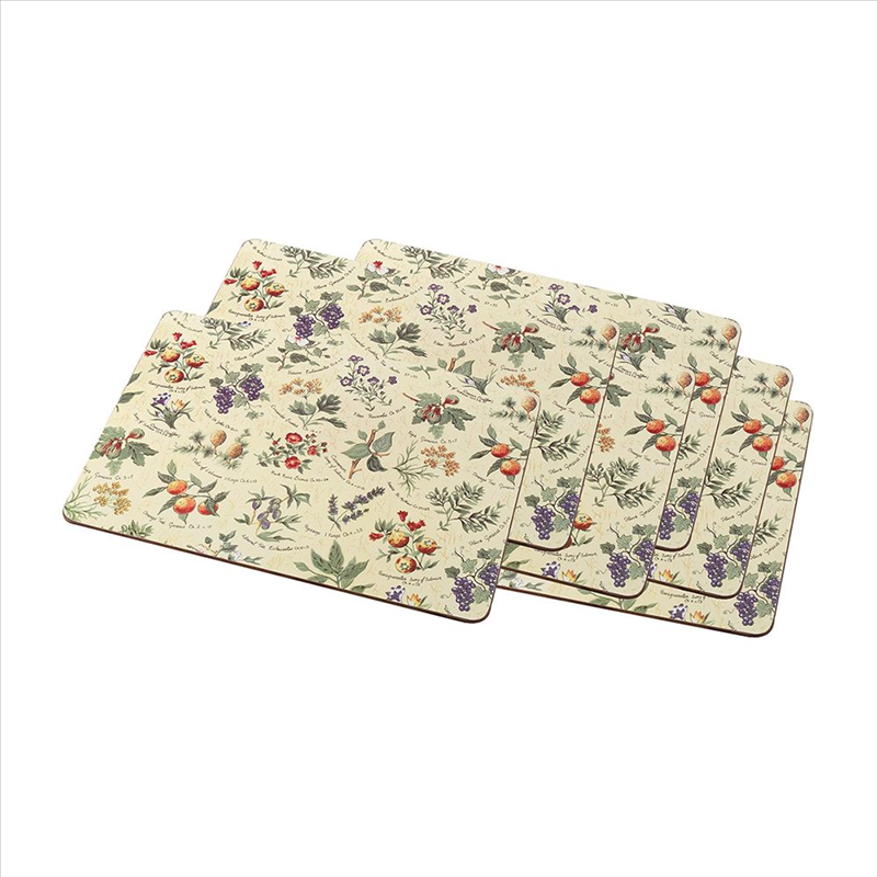 With their smooth finish and cork backing, these placemats are ideal for special occasions or everyday use. The laminated surface is heat resistant up to 100 degrees and the cork backing ensures furniture remains undamaged. The set comes in its own presentation box for easy storage.
